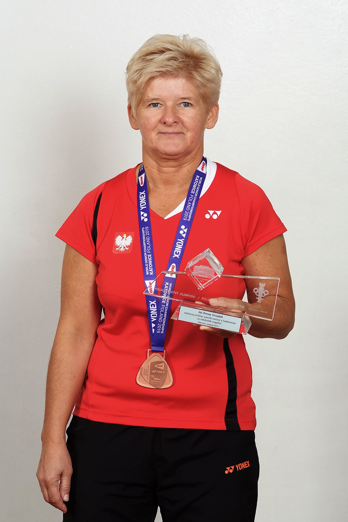 Dorota Grzejdak ( 2 ) z brązowym medalem mistrzostw świata seniorów (BWF World Senior Championships). W drodze do medalu Dorota  w pierwszej rundzie miała wolny los, następnie pokonała zawodniczkę z Finlandii, Niemiec, Indii.