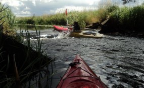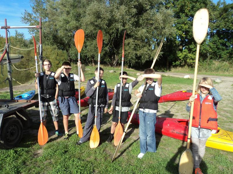 Uczniowie z Zespołu Szkół w Dąbrowie, Gimnazjum w Sianowie, SP nr 1 w Sianowie oraz SP w Iwięcinie uczestniczą w jesiennych zajęciach szkółki kajakowej. Pod czujnym okiem instruktora kajakowego Włodzimierza Zimnowłockiego poznają tajniki bezpiecznego pływania na kajakach jednoosobowych. Nabyte umiejętności pozwolą im się swobodnie poruszać po rzekach „zwałkowych” (z dużą ilością zwalonych w poprzek drzew) o szybkim nurcie oraz na rywalizację sportową podczas organizowanych regat kajakowych.