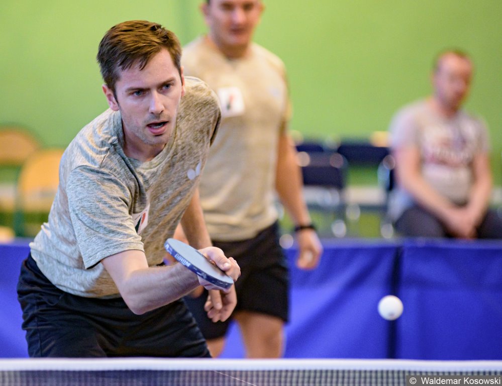 Tekst – Ryszard Wątroba, zdjęcie Bartosza Szarmacha, który wygrał obie gry pojedyncze w obu poprzednich meczach z gdańszczanami – Waldemar Kosowski
