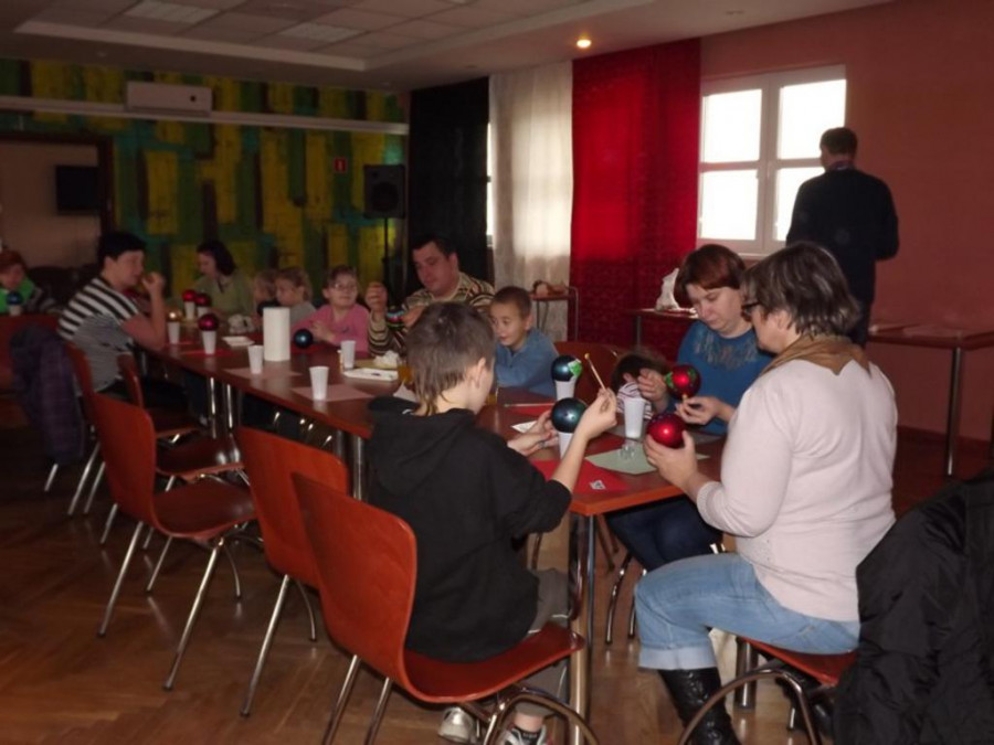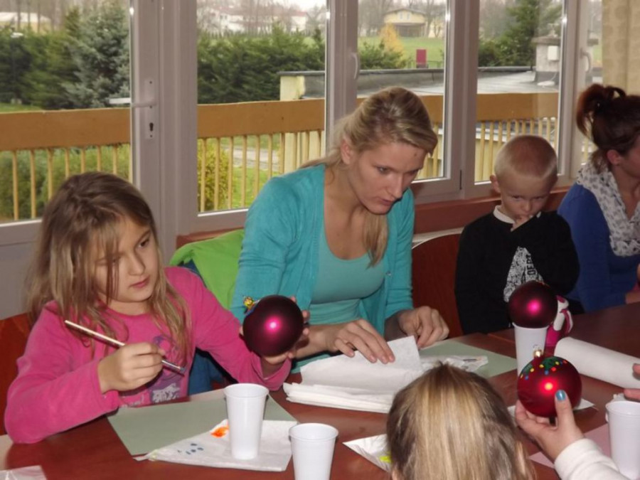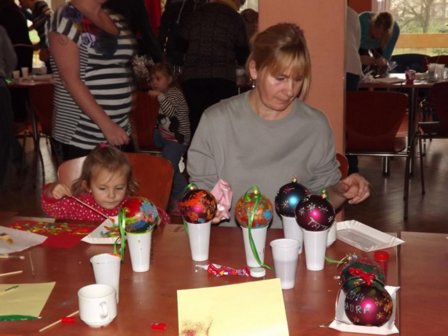 - zajęcia z arteterapii w ramach której całe rodziny wspólnie przygotowywały ozdoby na choinkę.