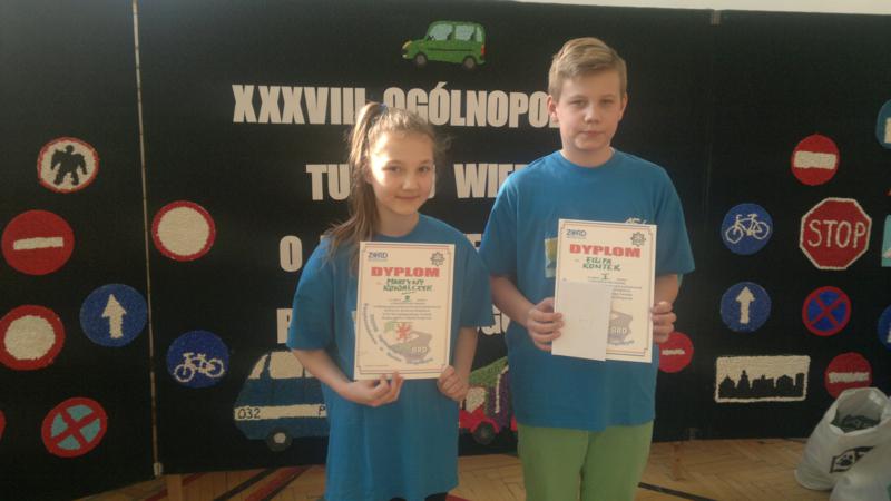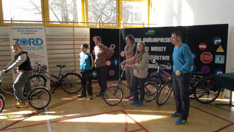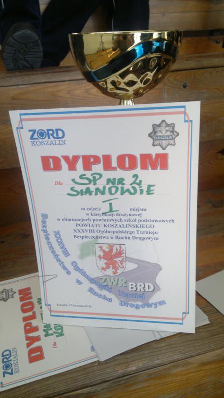17.03.2015 r. w SP nr 18 w Koszalinie odbył się XXXVIII Ogólnopolski Turniej Wiedzy o Bezpieczeństwie Ruchu Drogowego - etap powiatowy. Gminę Sianów reprezentowali uczniowie z: SP 2 w Sianowie, SP w Suchej Koszalińskiej i SP w Dąbrowie w kategorii szkół podstawowych oraz uczniowie Gimnazjum w Dąbrowie w kategorii szkół gimnazjalnych. Wszyscy zmagali się z konkurencjami sprawnościowymi na torze rowerowym, wykazali się znajomością przepisów z ruchu drogowego oraz wiedzą z zakresu udzielania pierwszej pomocy przedmedycznej. W kategorii szkół podstawowych w powiecie koszalińskim najlepiej wypadli uczniowie z SP 2 w Sianowie wygrywając drużynowo oraz zajmując dwa pierwsze miejsca indywidualnie. Zwycięska drużyna to: Filip Kontek klasa 6a (I miejsce indywidualnie), Martyna Kowalczyk klasa 5a (II miejsce indywidualnie), Dominik Grzywacz klasa 5a, Amelia Sambor klasa 5a. Uczniów przygotował pan Przemysław Ostrowski, a opiekunem była pani Joanna Czerwińska. W kategorii szkół gimnazjalnych dobrze zaprezentowali się uczniowie z Gimnazjum w Dąbrowie zdobywając III miejsce drużynowo oraz Damian Kapłon, który również zajął III miejsce indywidualnie. Opiekunem drużyn z ZS w Dąbrowie i SP w Suchej Koszalińskiej był pan Sebastian Wroński. Gratulujemy najlepszym "dwójkowiczom" i życzymy powodzenia na eliminacjach wojewódzkich, które odbędą się w Koszalinie w dniu 18.05.2015 r.