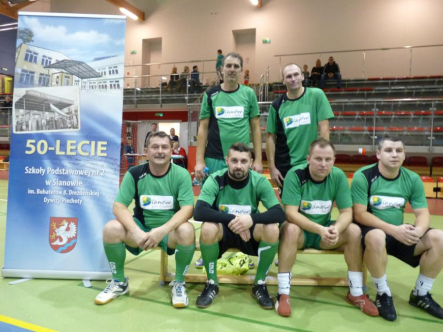Uroczyste obchody 50-lecia Szkoły Podstawowej Nr 2 w Sianowie im. Bohaterów 8. Drezdeńskiej Dywizji Piechoty, będą miały miejsce w najbliższy piątek, 28 listopada 2014 r. Jedną z imprez towarzyszących obchodom 50-lecia tzw. „nowej szkoły” – uroczyste otwarcie tej placówki (Pomnika Tysiąclecia Nr 825) miało miejsce 1 września 1964 r. - był I Halowy Turniej Piłkarski Absolwentów SP Nr 2 w Sianowie”, rozegrany w dwóch kategoriach wiekowych, 21 listopada 2014 r. Staraniem Elżbiety Missok, Jędrzeja Bieleckiego, Krzysztofa Gorta, Marka Walkera i Ryszarda Wątroby, w hali sportowo-widowiskowej SP Nr 2 w Sianowie im. Bohaterów 8. Drezdeńskiej Dywizji Piechoty, spotkali się absolwenci urodzeni w roku 1984 i młodsi – od godz. 16.oo i urodzeni w roku 1983 i starsi – od godz. 18.oo. W turnieju urodzonych w roku 1983 i starszych, wzięły udział trzy drużyny: Prymusy Sianów (kpt. Krzysztof Gort), Zielone Groszki Sianów (kpt. Krzysztof Miętek) i Średniostarsi Sianów (kpt. Grzegorz Józefowicz). Turniej otworzył Dyrektor Szkoły Podstawowej Nr 2 w Sianowie im. Bohaterów 8. Drezdeńskiej Dywizji Piechoty – Ireneusz Megiel. Przed rozpoczęciem gier, głos zabrał także: Przewodniczący Gminnej Rady Sportu w Sianowie – Ryszard Wątroba. Grano systemem „każdy z każdym”, dwa razy po dziesięć minut. Spotkania sędziował Ireneusz Zubkowicz. Opiekę przedmedyczną zabezpieczał nieodpłatnie, absolwent Szkoły Podstawowej Nr 1 w Sianowie im. hm. Janka Bytnara – Sebastian Kulesza. Pierwsze miejsce – w tym historycznym turnieju - w kategorii 1983 r. i starsi, zajął zespół - pod wdzięczną nazwą - Zielone Groszki Sianów. Drużynę tworzyli: Robert Szczerkowski – Marcin Knieć, Wiesław Krok, Michał Lisiewicz, Krzysztof Miętek i Piotr Motyl. Drugie miejsce zajęli Prymusy Sianów. Ekipę tworzyli: Marek Grzywacz – Krzysztof Czerwiński, Krzysztof Gort, Piotr Kierzek, Maciej Lewandowski i Piotr Pianka. Trzecie miejsce zajęli Średniostarsi Sianów. Zespół tworzyli: Grzegorz Grygiel – Witold Gorgoń, Robert Grabowski, Wojciech Jegliński, Grzegorz Józefowicz, Rafał Kochański i Andrzej Lewandowski.
