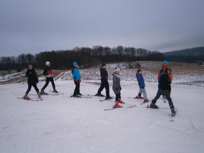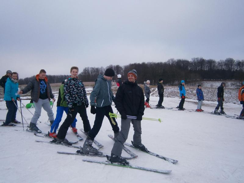 10 lutego 2015 roku odbył się szkolny wyjazd dla uczniów klas I-III gimnazjum oraz VI klasy podstawówki na narty do Trzepowa w woj. pomorskim. Jego celem była nauka jazdy na nartach oraz zabawa na śniegu. Wbrew pozorom uczniowie szybko opanowali podstawy techniki jazdy na nartach. Pod opieką wykwalifikowanych instruktorów p. Tomasza i p. Dominika poznali również zasady zachowania się na stoku. Grupę 16osobową podzielono na dwie mniejsze grupy. Po 2,5h zabawy na śniegu kolejną atrakcją była możliwość wspólnego upieczenie kiełbasek. Po najedzeniu się do syta na uczestników wyjazdu czekały kolejne 2,5h wspaniałej zabawy. Oczywiście nie obyło się bez mniejszych lub większych upadków, jednak nikomu to nie przeszkadzało, a wręcz powodowało dużo śmiechu. Po złożeniu sprzętu wszyscy udali się na ciepły posiłek, który po tak długiej zabawie smakował wyśmienicie. Około godziny 20 bus zawitał do Dąbrowy, a później do miejsc zamieszkania uczestników wyjazdu. Opiekunami i organizatorami wyjazdy byli Sebastian Wroński i Włodzimierz Zimnowłocki. Zabawa była wspaniała! Na pewno każdy z nas miło będzie wspominał tę wycieczkę,swoje pierwsze kroki na nartach, pierwsze upadki, które są nieodłączną częścią takiej nauki. Mamy nadzieję, że w następnym roku ponownie zawitamy do zasypanego śniegiem Trzepowa.