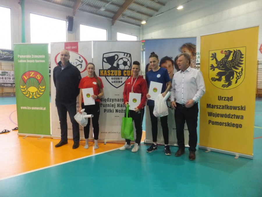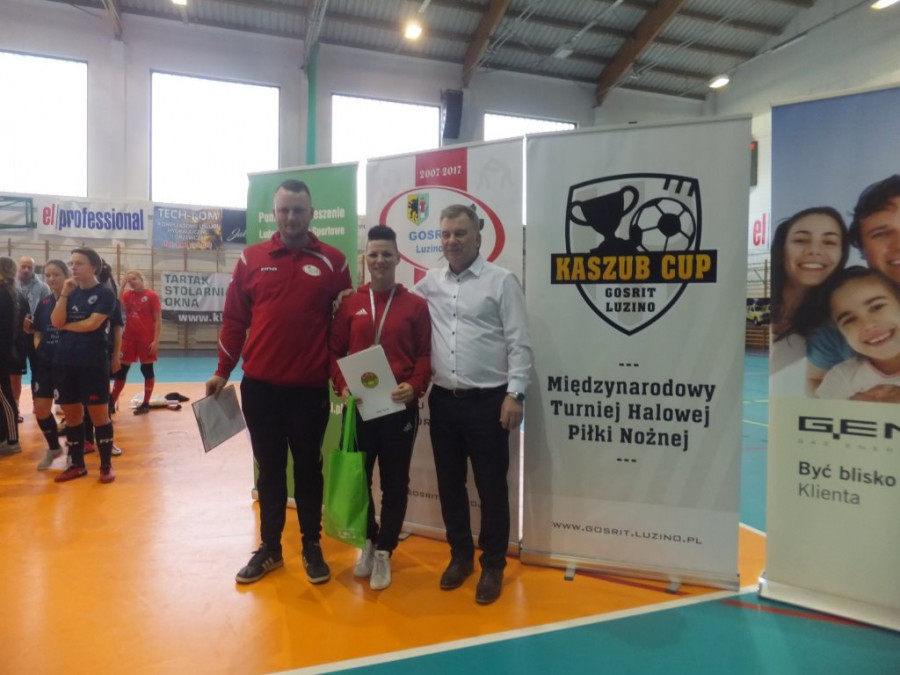 W Luzino ładnej miejscowości na Kaszubach odbył się dwudniowy XI Ogólnopolski Turniej Halowej Piłki Nożnej Kobiet KASZUB CUP. W turnieju rozegranym w pięknej i funkcjonalnej hali sportowej GOSRIT Luzino zarządzanej przez pasjonata sportu i dobrego organizatora, dyrektora Piotra Klechę udział wzięło 11 zespołów kobiecych. Wśród nich UKS Victoria SP2 Sianów. Sianowianki spisały się w gronie naprawdę dobrych zespołów bardzo dobrze i ostatecznie zajęły trzecie miejsce. Mogły wywalczyć jeszcze lepsze miejsce ale zaczęły nie najlepiej i w pierwszym meczu tuż po przyjeździe przegrały z gospodyniami turnieju GOSRIT-em Luzino 2:3. Nie były gorsze od Luzina ale niestety poniosły porażkę .Dwie bramki strzeliła Wiktoria Robakowska. W następnym meczu grając już trochę lepiej wygrały gładko z MKS Lew II Lębork 5:1 . Cztery bramki strzeliła Malwina Grzelak i jedną Marta Fil. W trzecim meczu spokojnie pokonały Stal Jezierzyce 4:1 a bramkami podzieliły się : Malwina Grzelak 1, Oliwia Żywanowska 1 i Anita Czerwik 2. W czwartym meczu uległy bardzo dobrze grającemu w tym pojedynku zespołowi Pogoni II Tczew 2:5. Obie bramki uzyskała Malwina Grzelak. Na zakończenie dnia rozłoszczone porażką z Tczewem piłkarki z Sianowa rozgromiły Pomeranię Dzwirzyno 8:1 . Bramki : Malwina Grzelak 3, Wiktoria Kaszyńska 2, Marta Fil 1,Oliwia Żywanowska 1 i Karolina Kawałek 1.Drugi dzień rozpoczął się od zwycięstwa 4:1 z MKS Lew I Lębork . Gole strzeliły : Malwina Grzelak 2, Wiktoria Kaszyńska 1 i Oliwia Żywanowska 1. W następnym meczu sianowianki nie dały szans GOSRIT II Luzino pokonując je 6:0. Gole strzelały : Marta Fil 3 i Malwina Grzelak 3. W ósmym już meczu grając spokojnie bez trudu wygrały z Canicula Bytów 4:0 a 3 bramki strzeliła świetnie dysponowana Malwina Grzelak i 1 bramkarka Sianowa Oktawia Kaszewska z rzutu wolnego. W przedostatnim meczu turnieju Victoria SP 2 zagrała z faworyzowanym i pozostającym bez porażki zespołem Pogoni I Tczew i zasłużenie po bardzo dobrym , emocjonującym meczu zwyciężyła 3:0. Bramki Marta Fil , Wiktoria Robakowska i Wiktoria Kaszyńska. W ostatnim spotkaniu sianowianki walcząc o miejsce na pudle spokojnie wypunktowały AP Kotwicę Kołobrzeg 4:0 po golach Malwiny Grzelak 2, Marty Fil i Wiktorii Kaszyńskiej. Na zakończenie turnieju trenerzy wybrali najlepszą zawodniczkę i bramkarkę turnieju. Najlepszą zawodniczką została Malwina Grzelak z Victorii SP2 Sianów a bramkarką Klaudia Zaklika z AP Kotwica Kołobrzeg. Królową strzelczyń została Karolina Drewa z GOSRIT Luzino. Zawody zostały bardzo dobrze przygotowane organizatorów z GOSRIT Luzina na czele z Sylwkiem Piątkiem i Adamem Olejniczakiem. Nie zabrakło nagród jak i poczęstunku dla przyjezdnych ekip. W sianowskiej drużynie wystąpiły: Oktawia Kaszewska, Wiktoria Kaszyńska,Wiktoria Robakowska, Marta Fil, Malwina Grzelak, Karolina Kawałek,Oliwia Żywanowska,Anita Czerwik,Wiktoria Ostróżka. Trenerzy sianowskiej ekipy : Jedrzej Bielecki, Rafał Orlicki i kierownik zespołu Jacenty Życiński nie byli do końca usatysfakcjonowani zajętym trzecim miejscem ale byli zadowoleni z gry swoich piłkarek szczególnie drugiego dnia zawodów. Nasze dziewczyny w pierwszym dniu , po podróży grały dobrze ale przegrały 2 mecze . Widać było po nich zmęczenie. Wypoczęły i następnego dnia pokazały klasę i wygrały bezapelacyjnie wszystkie spotkania.Z każdym meczem grały coraz lepiej. Zmieściły się na podium a nie było o to łatwo bo grały naprawdę z dobrymi zespołami a na dodatek na turniej pojechaliśmy w spory osłabieniu bez Agnieszki Pencherkiewicz, Wiktorii Paprockiej, Dagmary Petrus i Agaty Czaban. Miało to też swoje plusy no i szansa gry dla innych. I one to wykorzystały. Nasze dziewczyny wszystkie jak jedna grały bardzo dobrze i potwierdziły to na parkiecie. Najlepszą i to zdecydowanie okazała się drużyna Pogoni II Tczew , która nie poniosła żadnej porażki , zremisowała tylko 1 spotkanie z koleżankami z Pogoni I Tczew.W dniach 22-23 lutego sianowianki zagrają w Szczecinie na PAJO CUP 2020.