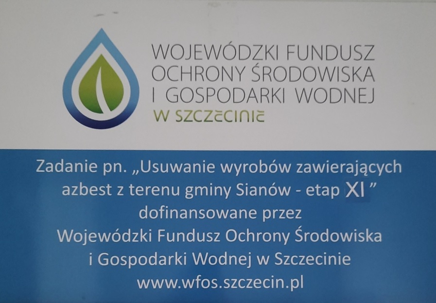 Gmina Sianów informuje, że w 2022 roku uzyskała pomoc finansową na zadanie pn. „Usuwanie wyrobów zawierających azbest z terenu Gminy Sianów – etap XI”, która pochodzi w 50% ze środków Narodowego Funduszu Ochrony Środowiska i Gospodarki Wodnej