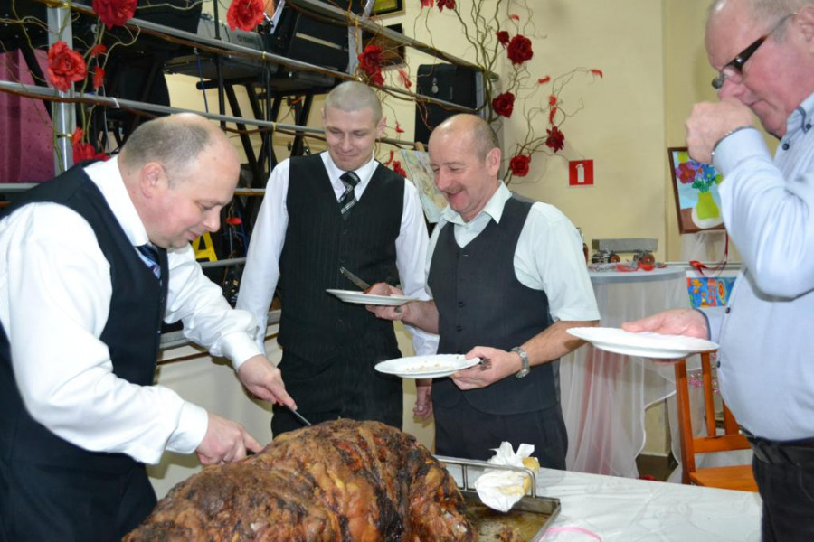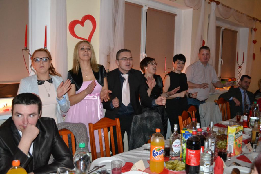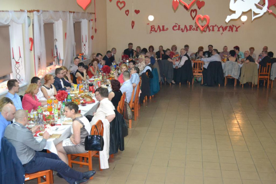 W sobotę 14 lutego tym razem w świetlicy wiejskiej w Osiekach o godzinie 20 rozpoczął się II Bal Charytatywny na rzecz Szkoły Podstawowej im. Aleksandra Doby w Iwięcinie. Spotkanie zainaugurowały Maluszki z naszej szkoły. Przedstawiły układ taneczny przygotowany pod okiem Pani Kingi z Ogólnopolskiej Szkoły Tańca i Dobrych Manier - Centrum Tańca Szczepan - Koszalin. Swoim występem dzieci wprowadziły nas w iście karnawałowy nastrój. Potem Pani Monika Kowalczyk w swym krótkim recitalu wykonała utwory z repertuaru Anny Wyszkoni i zespołu Maanam . No i zaczęło się, pary w pięknie przyozdobionej sali ruszyły na parkiet ... Pamiętając, że 14 luty to Dzień Zakochanych nie zabrakło bloku walentynkowego. Wybraliśmy spośród przybyłych gości Walentynkę i Walentego. Panowie zapisywali imiona swoich ukochanych na kartkach, po czym losowali wybrankę do tańca. Na parkiet wyszły przypadkowe pary, ten taniec był zaskoczeniem, ale też miłym towarzyskim doznaniem. Były też piernikowe serca zjadane przez pary bez użycia rąk - śmiechu było co niemiara. Dużą wyobraźnię oraz odwagę trzeba było wykazać w zadaniu, w którym tylko za pomocą mowy ciała należało zinterpretować i przedstawić wiersz miłosny będący fragmentem Hamleta - Williama Szekspira. Były też ciasteczka z wróżbami walentynkowymi. Niespodzianką dla wszystkich był występ z bogatą aranżacją dwóch Mam - Agnieszki i Magdy. Owacjom nie było końca. Punktualnie o północy na salę został wniesiony pieczony, płonący, siedemdziesięciokilogramowy dzik ... Zrobił niesamowite wrażenie, co ważniejsze był bardzo smaczny. W trakcie zabawy Szkolne Koło Caritas przeprowadziło loterię fantową. Voucher'y były przednie m.in.: lot samolotem, paralotnią, dwuosobowy nocleg w luksusowym hotelu SPA, wejścia do restauracji, kina, gabinetów odnowy biologicznej, na basen .... i wiele więcej. Była też wystawa różnych wspaniałości wykonanych przez uczniów i rodziców. Prace były tak szczególne, że zwróciły uwagę wielu gości. Duże zainteresowanie wzbudziła praca Pana Filipa Kaczorowskiego - Ojca trojga naszych uczniów - ciągnik samojezdny z przyczepą oraz bronami. Wszyscy dobrze się bawili, zabawa trwała do białego rana...