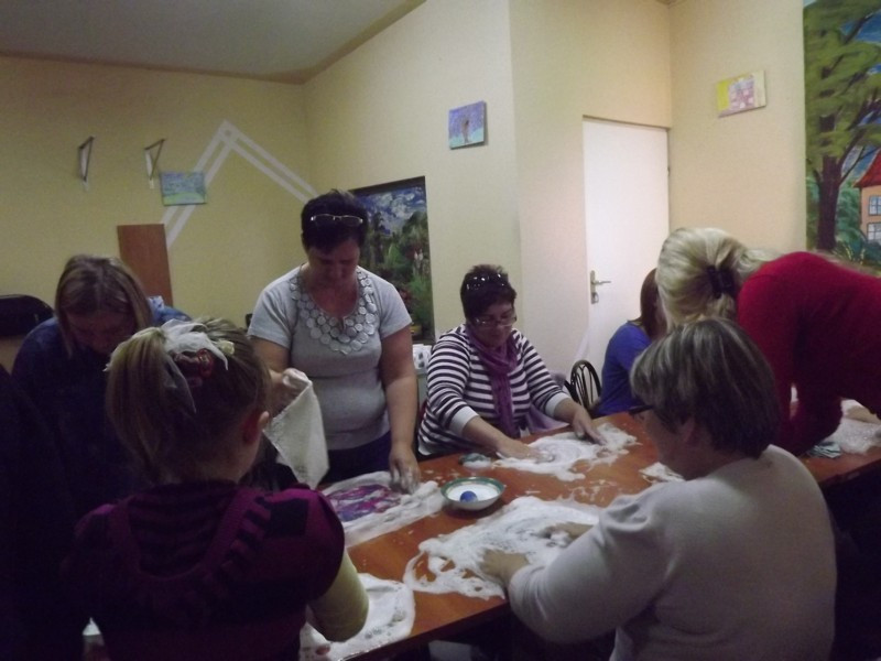 W ramach projektu systemowego „Pomocna dłoń plus” współfinansowanego przez Unię Europejską realizowanego przez Miejsko – Gminny Ośrodek Pomocy Społecznej w Sianowie odbyły się warsztaty filcowania. Prowadząca podzieliła się wiedzą z zakresu filcowania z owczej wełny czesankowej metodą " na mokro", czyli za pomocą wody i mydła, a także "na sucho" używając specjalnych igieł do filcowania. Starała się rozbudzić wyobraźnię, traktując indywidualnie każdą z uczestniczek. Zwracała uwagę na dobór kolorów, strukturę formy, a także prawidłową kompozycję powstającej formy. Panie poznały podstawowe narzędzie i techniki filcowania na sucho, a także na mokro. Mamy nadzieję, że praca z wełną zainspiruje Panie do dalszych własnych działań twórczych.