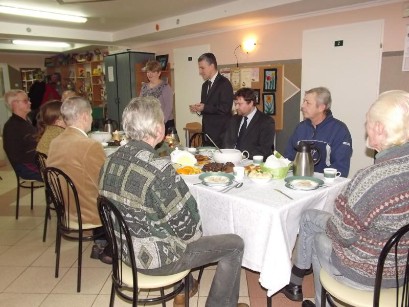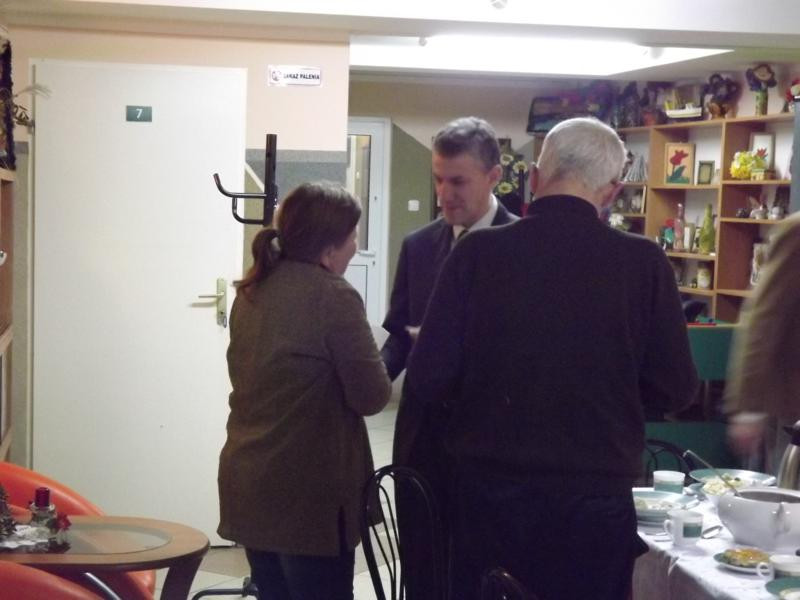 Zorganizowanie wigilijnego stołu dla bezdomnych, samotnych stało się już tradycją. Specjalnymi gośćmi dzisiejszej wigilii byłi: ksiądz Proboszcz -Zbigniew Waszkiewicz, Maciej Berlicki – Burmistrz Gminy i Miasta Sianów, Marcin Posmyk- zastępca burmistrza i którzy wraz z gospodarzem Haliną Iwanisik – Kierownikiem Miejsko-Gminnego Ośrodka Pomocy Społecznej w Sianowie złożyli bożonarodzeniowe życzenia- aby na czas Bożego Narodzenia zapomnieli o nieporozumieniach, bólach i żyli nadzieją, która płynie z Betlejem, miasta chleba, światła i dobrej nowiny” by te święta były dla wszystkich dniem pokoju i radości. Świąteczne życzenia przy opłatku złożył też radny Rady Miejskiej w Sianowie Sylwester Pierzycki.