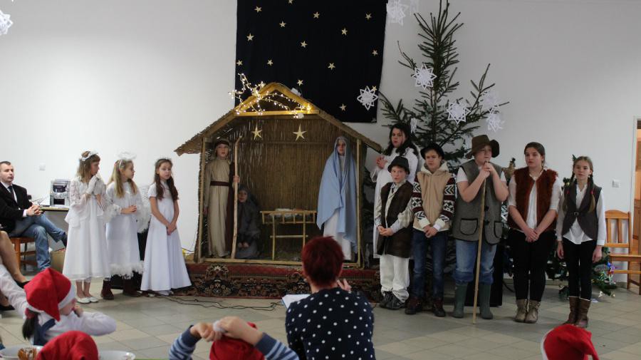 W ten zimowy czas narodzony Chrystus na nowo rozpala w naszych sercach miłość, która niesie wiarę i nadzieję. Choinka, pierwsza gniazdka, Mikołaj, biały śnieg, opłatek, talerz na stole … to symbole Świąt Bożego Narodzenia. Już po raz trzeci spotkaliśmy się na Wigilii organizowanej przez Szkołę w Iwięcinie. Miejscem spotkania, jak co roku była świetlica wiejska. Rozpoczęliśmy od Jasełek. Uczniowie pod czujnym okiem pani Renaty przedstawili historię Narodzenia Jezusa. Planowaliśmy, że w Iwięcinie zorganizujemy festiwal jasełek, w którym wezmą udział przedstawiciele szkół i świetlic z terenu Gminy i Miasta Sianów. Niestety problem stanowił transport dla tak licznej grupy artystów. Z wiarą czekamy na święta w 2016 r., może się uda.