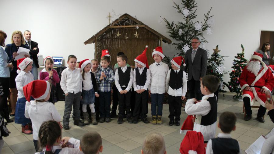 Zaproszeni goście podzielili się z nami dobrym słowem. Życzyli pięknych świąt i wytrwałości w tym, co robimy, a jak usłyszeliśmy robimy dobre rzeczy. Na koniec uczniowie z każdej klasy prezentowali wybraną kolędę, a Mikołaj wręczał zasłużone prezenty. Była prawdziwie świąteczna, rodzinna atmosfera. Dla pani Grażyny w podziękowaniu za to, że mogliśmy gościć w świetlicy zaśpiewaliśmy piękną polską kolędę „Dzisiaj w Betlejem „.