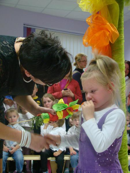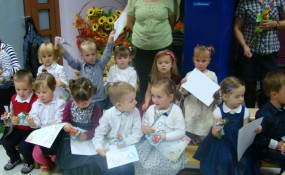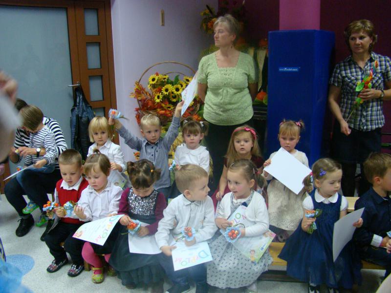 29 października w Przedszkolu odbyła się wielka uroczystość. 50-cioro trzylatków i 25 czterolatków zostało włączonych w poczet Przedszkolaków. Dzieci z grupy „Żabek”, „Motylków” i „Biedronek” recytowały wiersze, śpiewały piosenki i tańczyły. Rodzice występy nagradzali gromkimi brawami. Następnie trzy i czterolatki przeszły test wiedzy, który zdały rewelacyjnie. Po wykazaniu się umiejętnościami, dzieci przekraczały symboliczną bramę, za którą stała Pani Dyrektor z ogromnym lizakiem i pasowała wszystkich na Przedszkolaków. Na zakończenie „Prawdziwe Przedszkolaki” otrzymały dyplomy i prezenty od „Starszaków”.