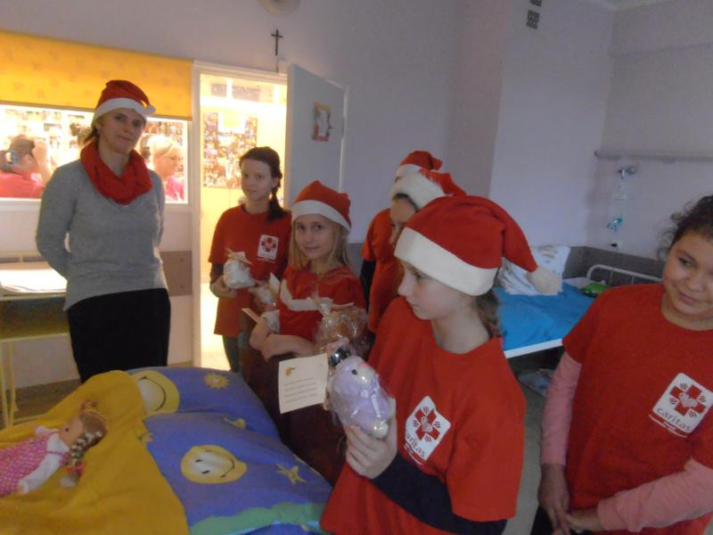 Jak co roku tuż przed Bożym Narodzeniem wolontariusze Szkolnego Koła Caritas przy SP nr 2 w Sianowie odwiedzają chore dzieci w Szpitalu Wojwódzkim w Koszalinie. W czwartek 17 grudnia 2015 r. razem z opiekunką koła p. Anną Pianką i pedagogiem szkolnym p. Joanną Czerwińską radosne i uśmiechnięte wolontariuszki - Mikołajki udały się do szpitala z podarunkami dla małych pacjentów. Każde z dzieci otrzymało pluszaka z życzeniami szybkiego powrotu do zdrowia, a Panie pielęgniarki stroik, słodki podarunek oraz specjalny kalendarz SKC na 2016 rok. Poza tym wolontariuszki zostawiły materiały papiernicze i kreatywne, zakupione ze środków pozyskanych podczas loterii "Mikolandia", która odbyła się w naszej szkole 2 tygodnie temu.