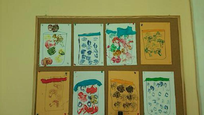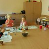 Piękna pogoda ostatnich dni lata sprzyjała wędrówkom po lesie i zabawom na powietrzu. Jeden dzień w tygodniu poświęcamy na zajęcia czytelnicze pt. "Mądra głowa zna przysłowia". Jesień zachwyca bogactwem i różnorodnością mieniących się barw, które inspirują do ciekawych zajęć plastycznych. Podczas pierwszych zajęć robiliśmy jesienne przetwory-pieczątki z jabłek, gruszek, grzybów i śliwek. Na kolejnych kolorową parasolkę i deszcz kropek z farby. Trzecie zajęcia to kolorowe jesienne drzewa wykonane techniką pointylizmu.