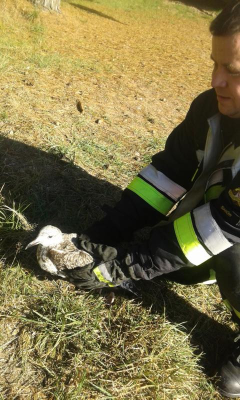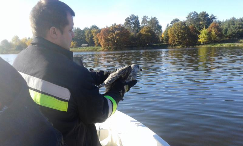 Nietypową, a co najważniejsze – sprawną i skuteczną akcję ratowniczą przeprowadzili we wtorek strażnicy miejscy wspólnie ze strażakami z OSP w Sianowie. W trakcie patrolowania okolic jeziora Topiele strażnicy SM w Sianowie uzyskali informację iż na jeziorze znajduje się mewa, której życie jest zagrożone. Po przybyciu na miejsce stwierdzili, iż mewa ma do nóżki umocowaną torbę foliową wypełnioną wodą i jest już mocno osłabiona nieskutecznymi próbami wydostania się z jeziora. Ponieważ ptak znajdował się na tafli wody kilkadziesiąt metrów od brzegu, w trybie alarmowym zwrócili się o pomoc do Ochotniczej Straży Pożarnej w Sianowie. Naczelnik OSP niezwłocznie zorganizował i dostarczył nad jezioro łódź, która umożliwiła wydobycie z wody i uratowania życia ptaka.