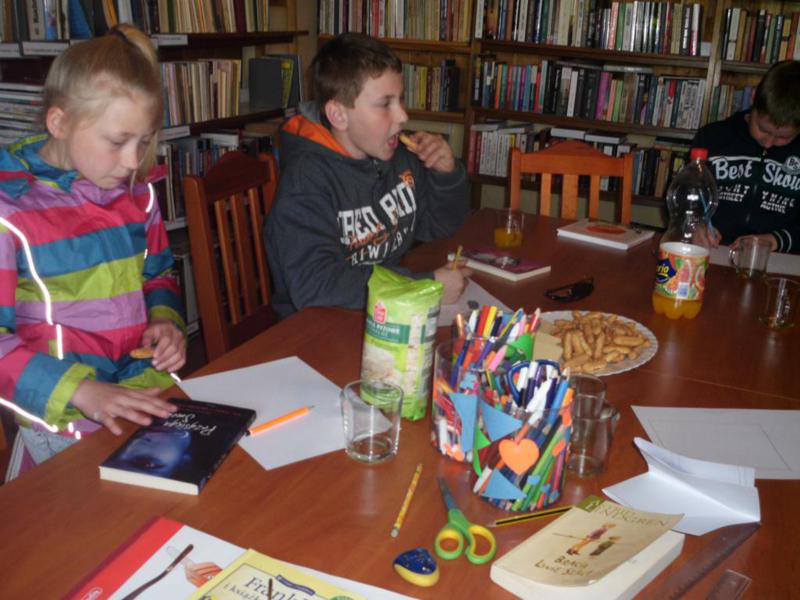 W czasie Tygodnia bibliotek pod hasłem "Wybieram bibliotekę" dzieci z filii bibliotecznej w Siecieminie wzięły udział w lekcji bibliotecznej "Poznaj swoją bibliotekę". W trakcie spotkania przedstawione zostały nowości wydawnicze dla dzieci, zasady korzystania z biblioteki oraz dlaczego trzeba szanować książki. Następnie dzieci wysłuchały bajki "Franklin i książka z biblioteki". Przy słuchaniu lektury powstały projekty okładek do wymyślonych książek. Na drugim spotkaniu "Łamigłówki literackie" dzieci, po uprzednim wysłuchaniu, uzupełniały teksty znanych wierszy J.Brzechwy "Kwoka" i "Kaczka dziwaczka". Trzeba przyznać, że nie było najmniejszych problemów z tym zadaniem. Oczywiście nie zabrakło również słodkiego poczęstunku, były ciasteczka i pyszny soczek.