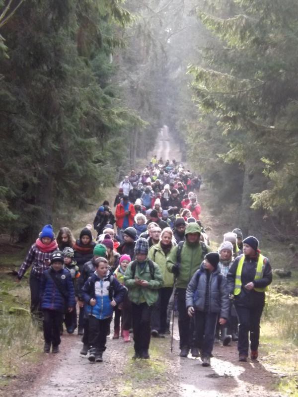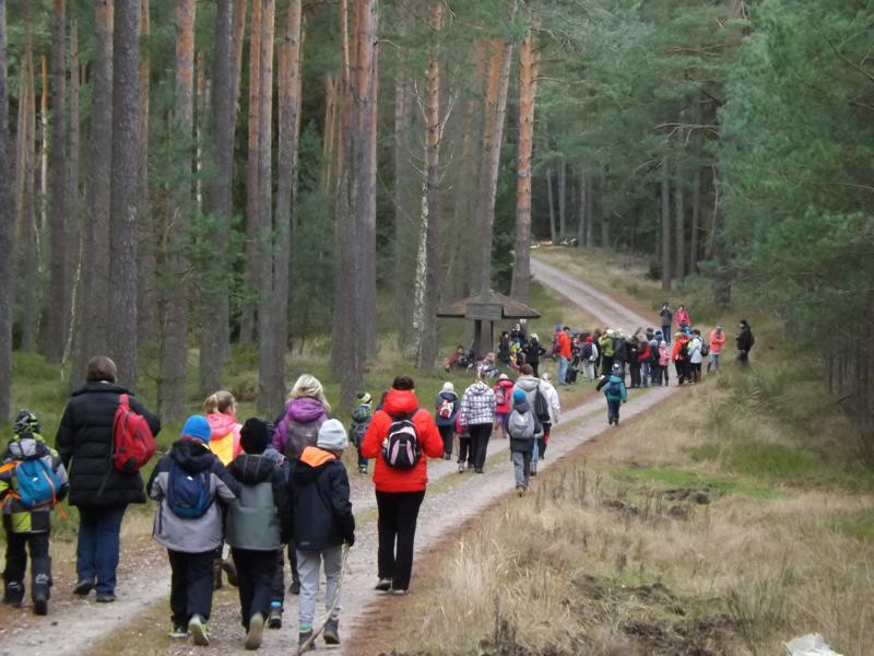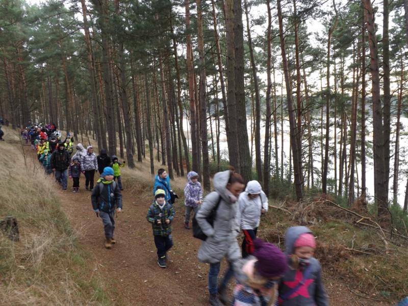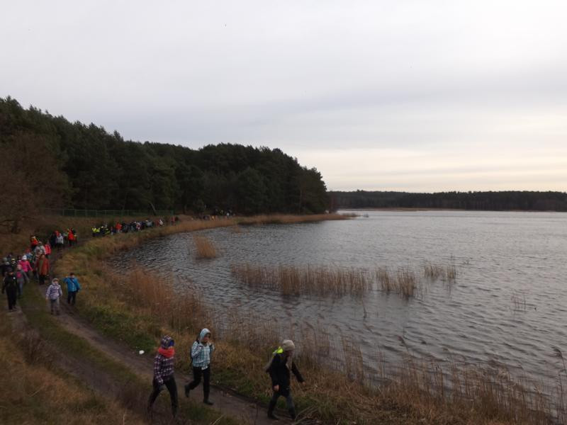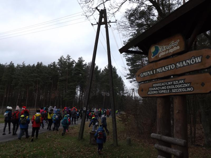 Czekaliśmy… czekaliśmy…. i się nie doczekaliśmy. Oczywiście przyjścia śnieżnej zimy. Ostatni raz Rajd Choinkowy w śniegu, jeśli dobrze pamiętam miał miejsce w 2012 roku. Szliśmy wówczas piękną trasą, wśród ośnieżonej przyrody z Wyszewa do Ośrodka Edukacji Ekologicznej w Manowie. No, ale cóż to już tylko nasze niezapomniane wspomnienia. Tym razem wyruszyliśmy na 10 rajd Choinkowy ze Szczeglina, gdzie na start zostaliśmy dowiezieni autokarami.