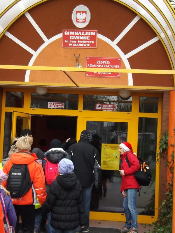 Natomiast rośliną z Polskiej Czerwonej Listy, którą można spotkać na tym terenie to paproć – narecznica grzebieniasta. Rajd zakończyliśmy w gościnnych progach Gimnazjum Gminnego im. Ireny Sendlerowej w Sianowie. Mogliśmy tu w spokoju i cieple zjeść rajowy żurek i przeprowadzić w salach konkursy krajoznawcze pod czujnym okiem kolegi Kazika Raczyńskiego.