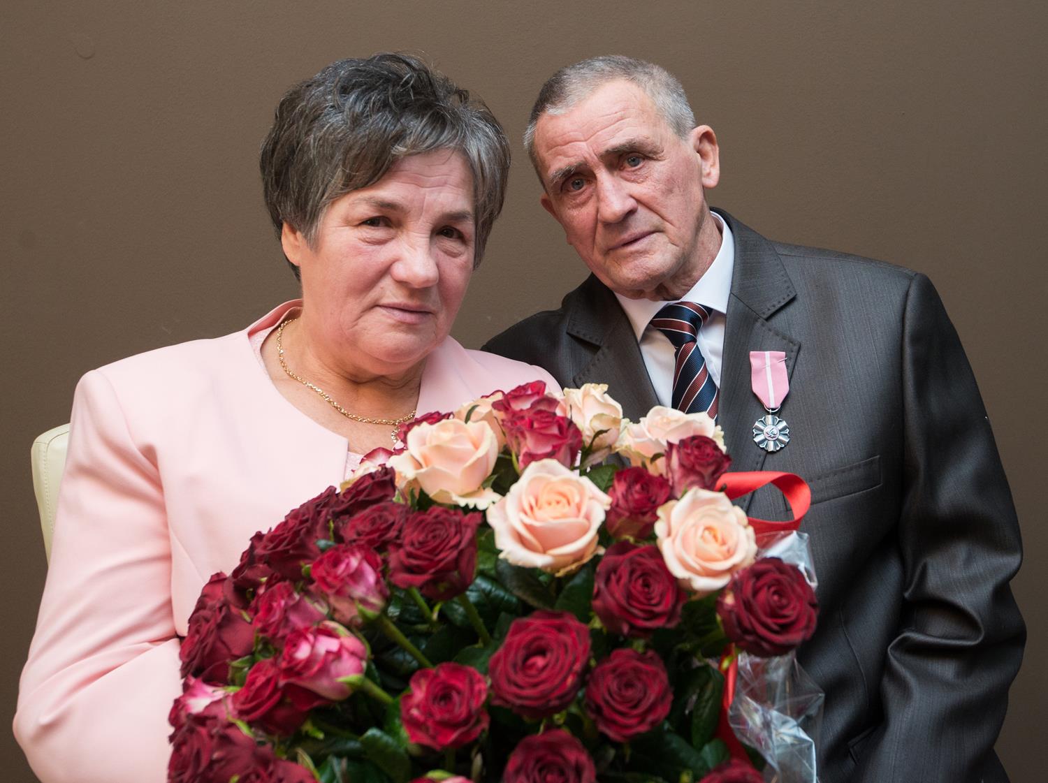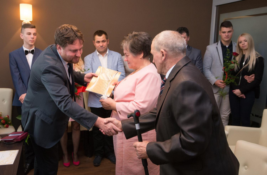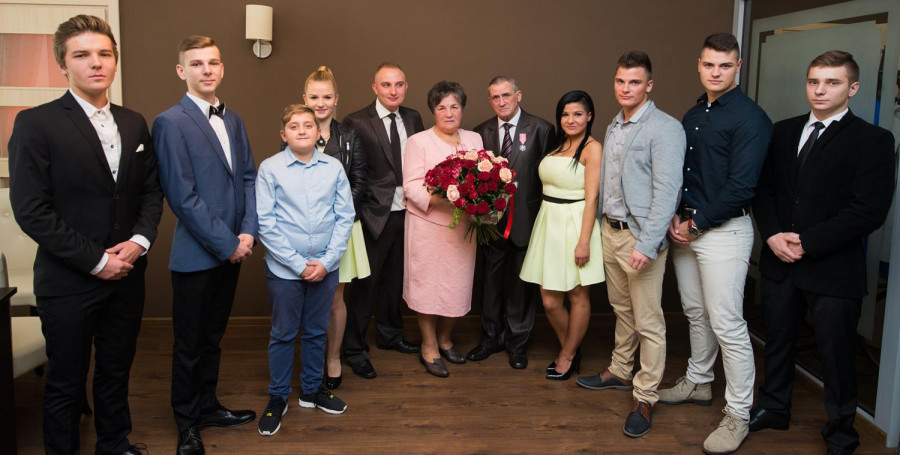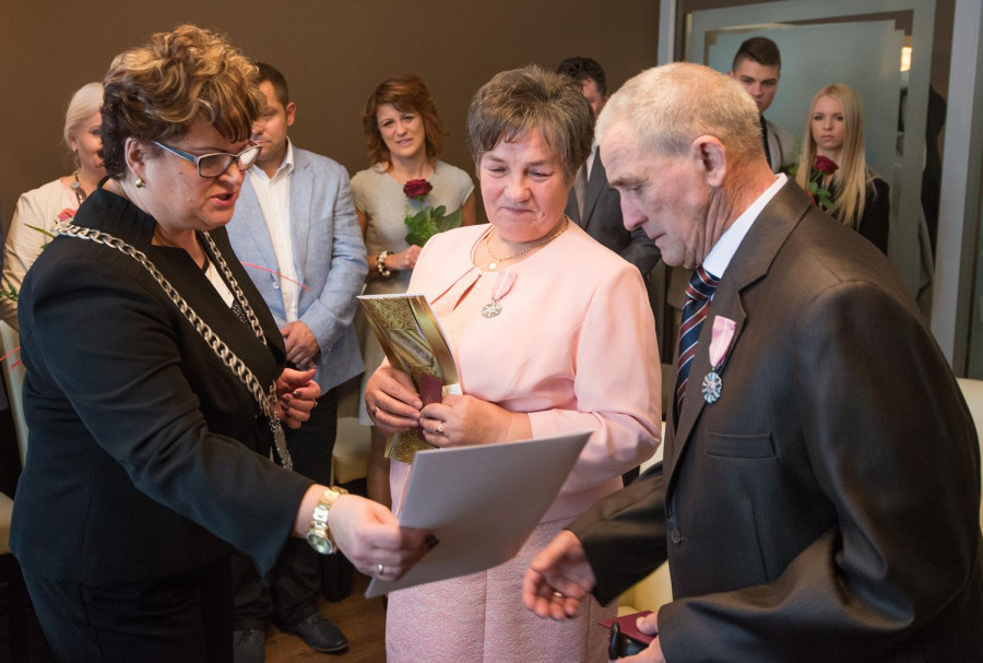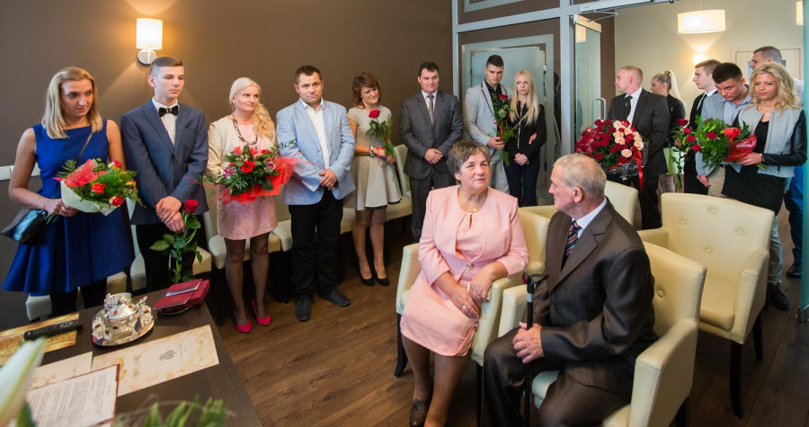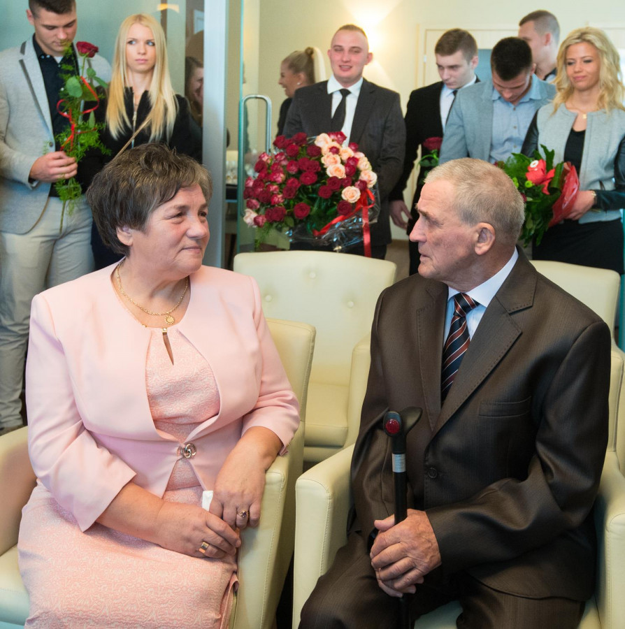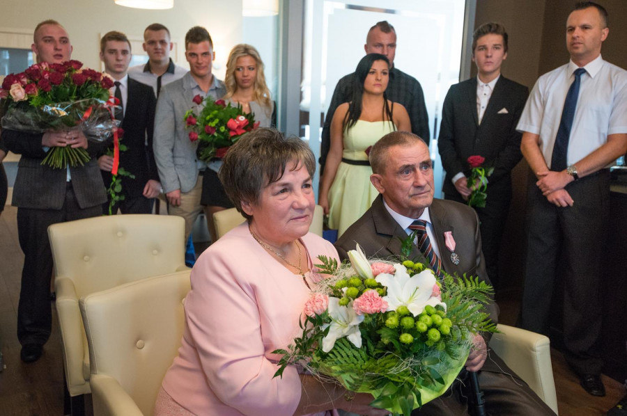 W sobotę 31 października 2015 roku Urząd Stanu Cywilnego w Sianowie zorganizował uroczystość mającą na celu uhonorowanie złotych jubilatów medalami od Prezydenta RP za długoletnie pożycie małżeńskie - Państwa Genowefy i Adama Kozłowskich z Sianowa, którzy 50 lat temu stanęli na ślubnym kobiercu by przyrzec sobie wzajemną miłość, wierność i uczciwość małżeńską. Przeszli razem długą drogę, razem zmagali się z życiem i przeciwnościami losu, bo wspólne życie to też próba charakteru. Ale ich miłość przetrzymała wszystkie trudy i przetrwała pół wieku. Jak przed laty stanęli obok siebie – szczęśliwi i piękni. Popłynęły : muzyka, wspomnienia i łzy wzruszenia. Podczas uroczystości nie mogło zabraknąć toastu wzniesionego lampką szampana, był też okazały tort. Całości dopełniły kwiaty, upominki, pamiątkowe dyplomy i moc życzeń od wszystkich gości i licznie przybyłej rodziny - na następne szczęśliwe lata. GRATULUJEMY!