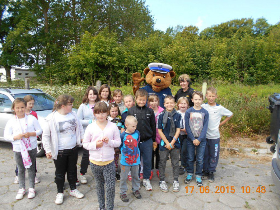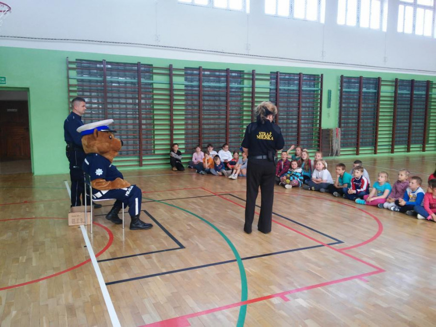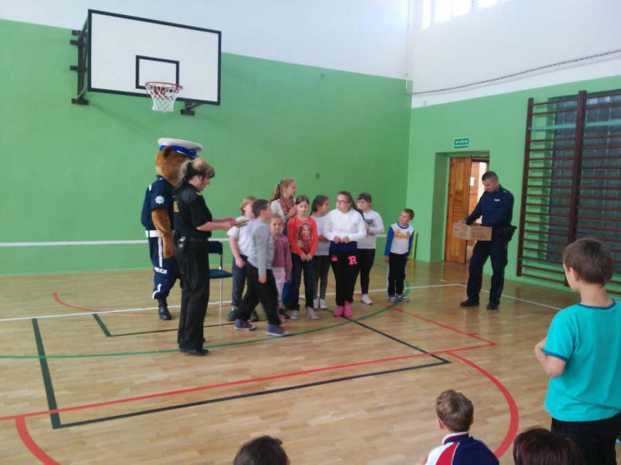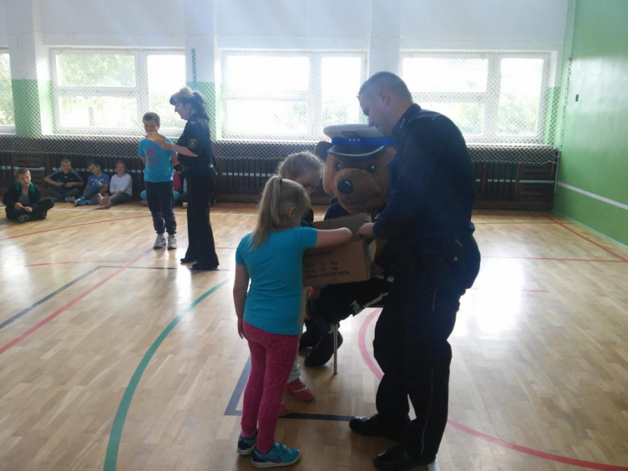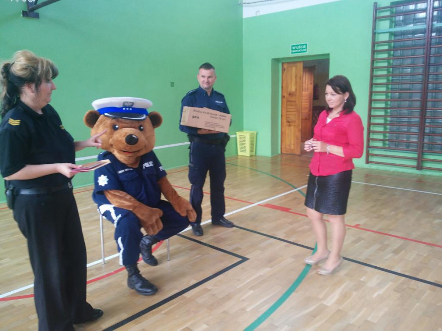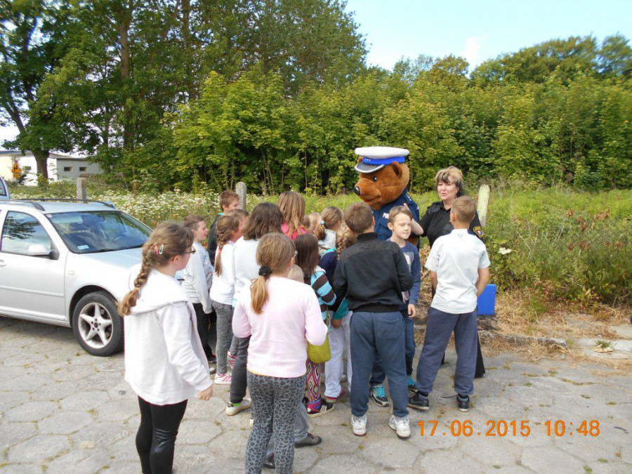 W dniu 17.06.2015 roku w ramach ogólnopolskiej akcji „Bezpieczne Wakacje” Pani Strażnik Miejski z Sianowa i Policjanci z Posterunku Policji w Sianowie odwiedzili szkołę w Suchej Koszalińskiej. Do szkoły zawitał również popularny i znany przez dzieci KOMISARZ POLICJI WOJTEK. W trakcie zabawy, w której uczestniczyły wszystkie klasy, Pani Strażnik i Komisarz Wojtek uczyły dzieci prawidłowego zachowania w czasie kiedy będą spędzały wakacje. Prelekcja dotyczyła przede wszystkim prawidłowego zachowania dzieci na ulicy i nad wodą oraz na obiektach sportowych. Pani Strażnik wspólnie z Komisarzem Wojtkiem zadawały proste zagadki, na które dzieci bardzo chętnie i szybko odpowiadały. W nagrodę wszystkie dzieci zostały obdarowane drobnymi upominkami, a przede wszystkim światełkami i opaskami odblaskowymi.
