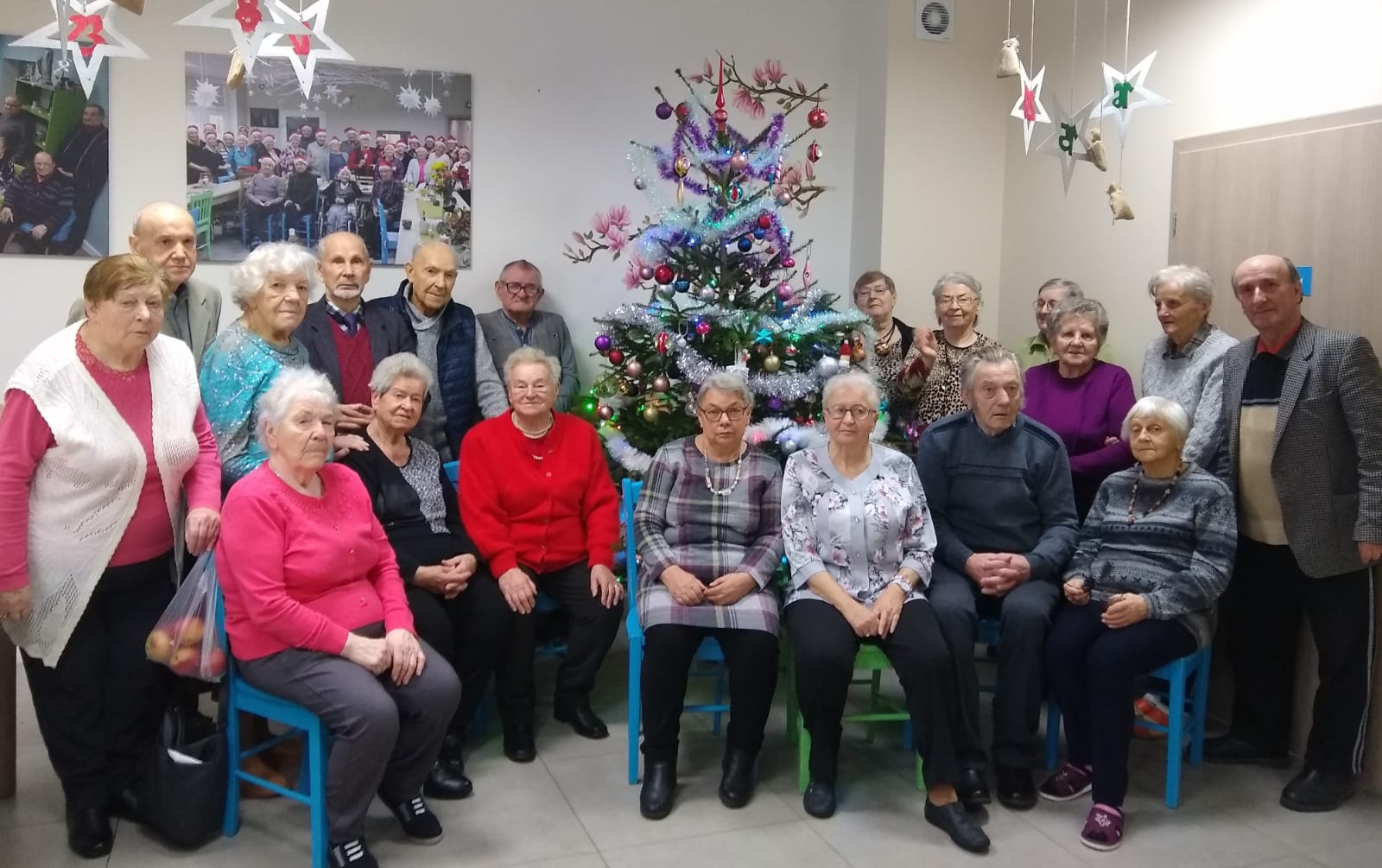 W Dziennym Domu Senior+ „Magnolia” zapachniało choinką oraz klimatem Świąt Bożego Narodzenia. Seniorzy przy kolędach ozdobili drzewko. Z radością, wzruszeniem i tęsknotą wspominali tradycje z dzieciństwa. Z pamięci powracały opowieści o tym jak wyglądały dawne choinki, jaka była moda i tradycja ich „ubierania”. Wszyscy zgodnie przypominali, że były to przede wszystkim ozdoby własnoręcznie robione, do tego świeczki na specjalnych uchwytach, cukierki, jabłka, orzechy i pierniki. Większość ozdób było dodatkową atrakcją i pokusą dla dzieci, które chętnie korzystały ze smakołyków zdobiących drzewko.
