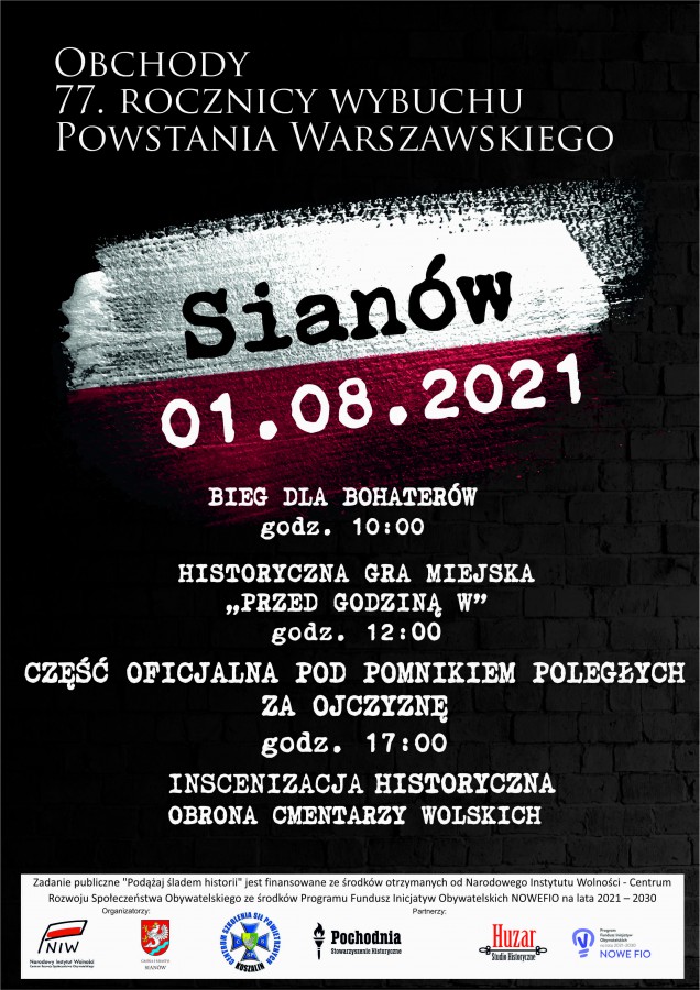Zadanie publiczne "Podążaj śladem historii" jest finansowane ze środków otrzymanych od Narodowego Instytutu Wolności - Centrum Rozwoju Społeczeństwa Obywatelskiego ze środków Programu Fundusz Inicjatyw Obywatelskich NOWEFIO na lata 2021 – 2030