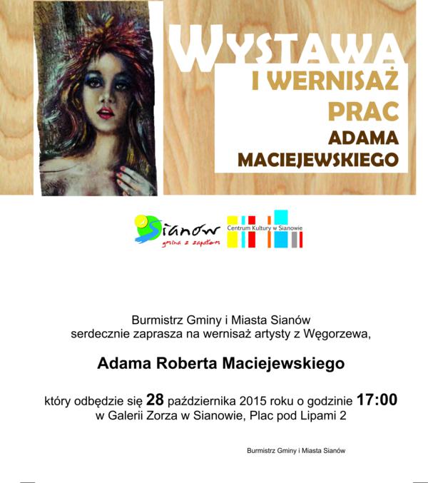 We wtorek 28 października o godzinie 17:00 w Galerii Zorza w Sianowie odbędzie się wernisaż prac Adama Maciejewskiego. Pan Adam jest mieszkańcem naszej gminy. To osoba bardzo utalentowana artystycznie. Pasje malarstwa, rzeźbiarstwa oraz muzyki wyniósł z domu rodzinnego. Upór, praca oraz zainteresowanie dowiodły, że można rozwijać swoje zdolności, osiągać osobiste sukcesy i zadowolenie. Pan Adam jest autorem m.in. pięknie pomalowanych przystanków w Osiekach, Skibnie oraz Węgorzewie. W swojej galerii posiada imponujący zbiór prac artystycznych, którymi zainteresuje wszystkich pasjonatów sztuki.