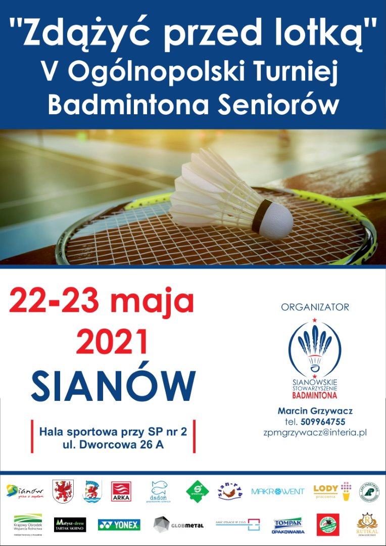 W dniach 22-23 maja 2021 r. na hali sportowej przy Szkole Podstawowej nr 2, rozegrany zostanie, po raz piąty w historii w Sianowie, Ogólnopolski Turniej Seniorów Badmintona „Zdążyć przed lotką”. Głównym organizatorem i pomysłodawcą jest Marcin Grzywacz, z ramienia Sianowskiego Stowarzyszenia Badmintona. Zaproszenie na zawody przyjęli zawodnicy z różnych stron Polski i nie tylko. Zgłosili się już Niemcy, swoją obecność zapowiedzieli też Rosjanie, Ukraińcy i Austryjacy. Impreza zaczyna się w sobotę o godz. 9.00 W trakcie turnieju odbędzie się akcja charytatywna prowadzona przez Sianowski Zespół Caritas. Oprócz loterii z cennymi nagrodami będzie można nabyć pyszne, domowe ciasta, napić się kawki i herbaty. Zapraszamy w sobotę wszystkich mieszkańców Gminy Sianów.