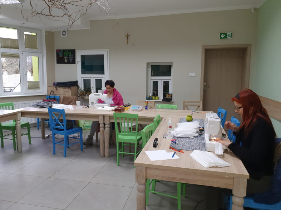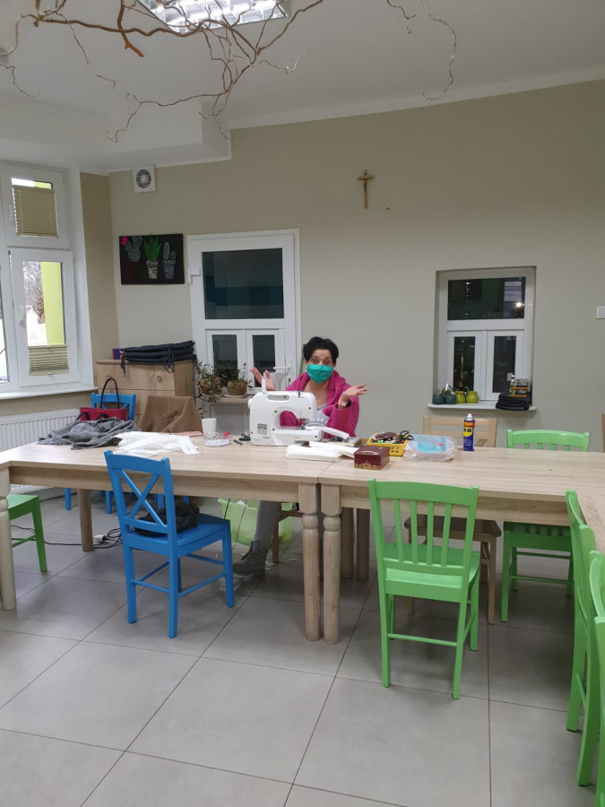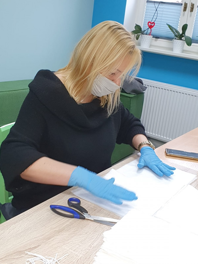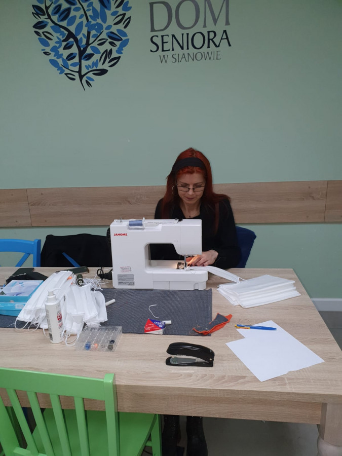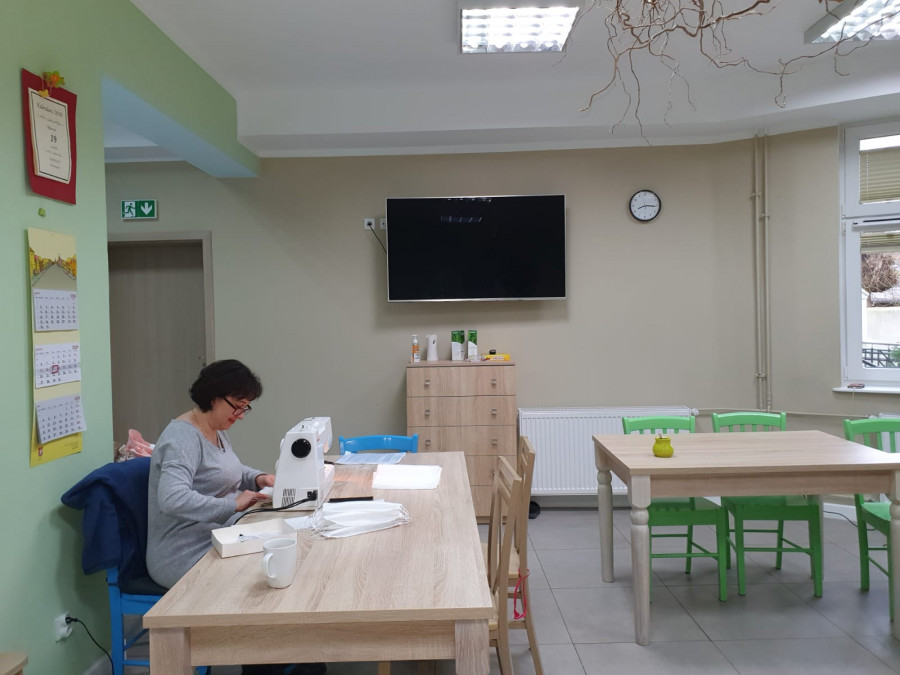 Pracownicy Miejsko-Gminnego Ośrodka Pomocy Społecznej i Środowiskowego Domu Samopomocy „Szansa” w Sianowie już kolejny tydzień szyją indywidualne maseczki ochronne. Tym razem grupa „krawiecka” zagospodarowała główną salę Dziennego Domu Senior Plus. To tutaj z podziałem na podzespoły kroju i szycia powstają obowiązkowe od dzisiaj maseczki zasłaniające nos i usta. Dystrybucją maseczek zajmuje się MGOPS ul. Słowackiego 3a (okienko podawcze przy wejściu do Działu Świadczeń Rodzinnych). Pomoc adresowana jest przede wszystkim do niesamodzielnych mieszkańców miasta, którzy jeszcze nie zabezpieczyli się we własnym zakresie w maseczkę (osoby samotne, starsze, niepełnosprawne).