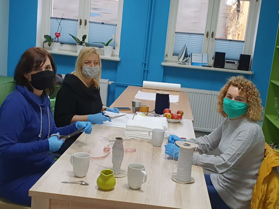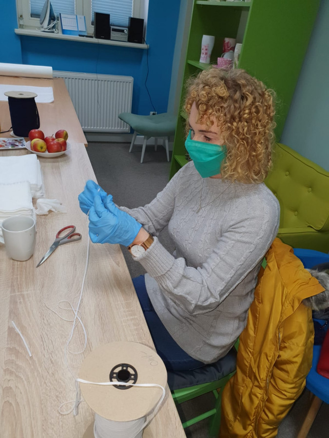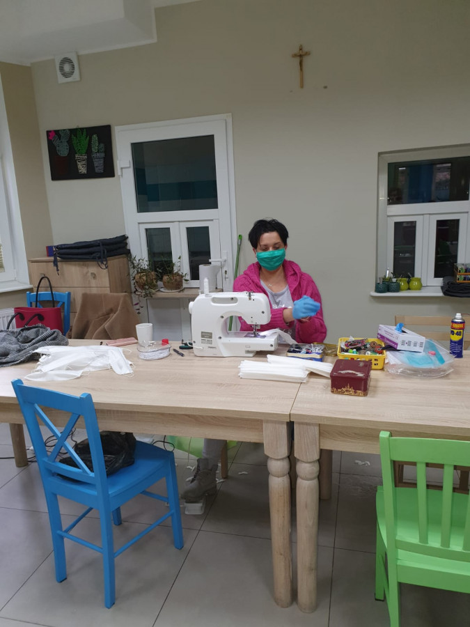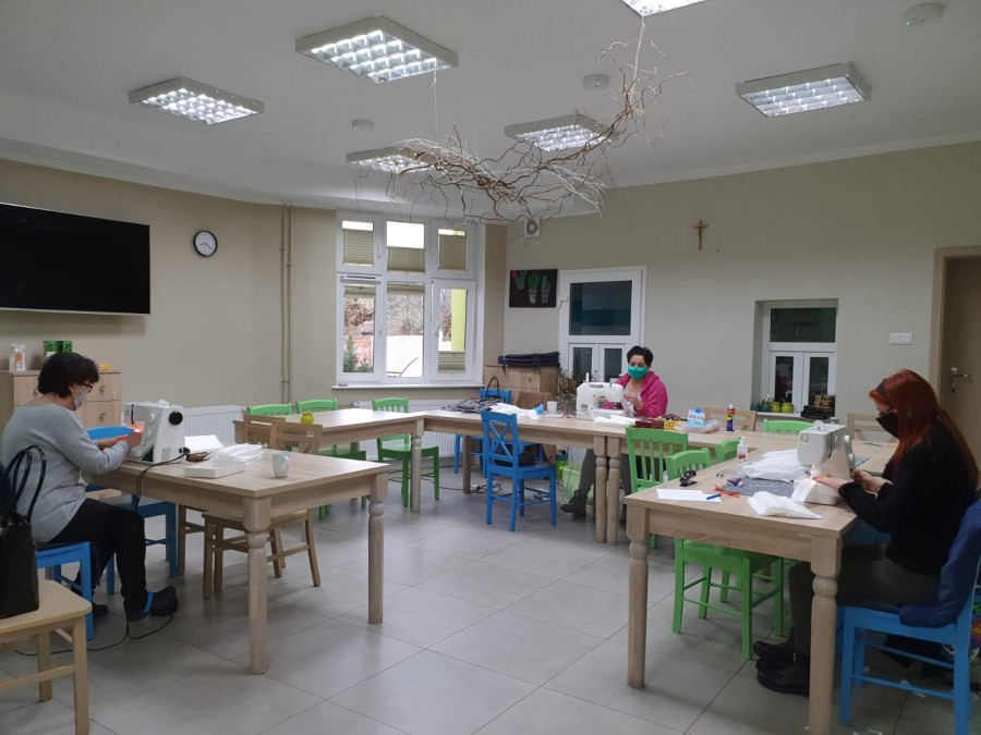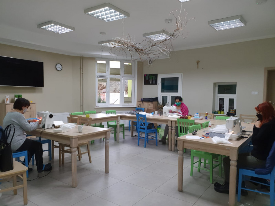 Pracownicy Miejsko-Gminnego Ośrodka Pomocy Społecznej i Środowiskowego Domu Samopomocy „Szansa” w Sianowie już kolejny tydzień szyją indywidualne maseczki ochronne. Tym razem grupa „krawiecka” zagospodarowała główną salę Dziennego Domu Senior Plus. To tutaj z podziałem na podzespoły kroju i szycia powstają obowiązkowe od dzisiaj maseczki zasłaniające nos i usta. Dystrybucją maseczek zajmuje się MGOPS ul. Słowackiego 3a (okienko podawcze przy wejściu do Działu Świadczeń Rodzinnych). Pomoc adresowana jest przede wszystkim do niesamodzielnych mieszkańców miasta, którzy jeszcze nie zabezpieczyli się we własnym zakresie w maseczkę (osoby samotne, starsze, niepełnosprawne).
