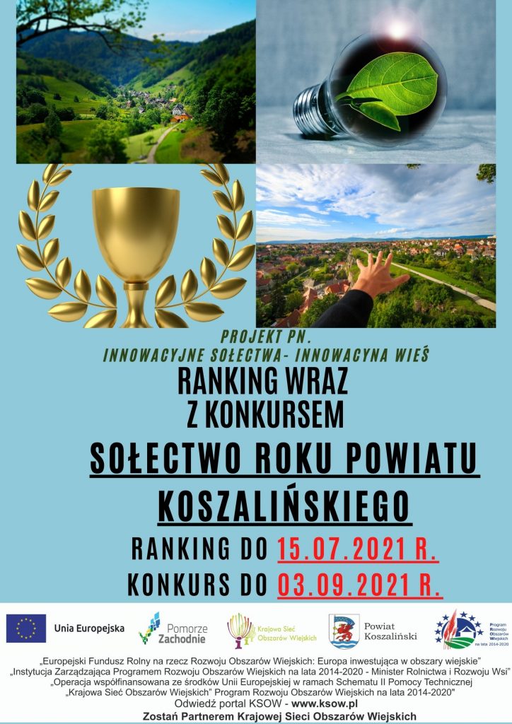 Ruszamy z rankingiem połączonym wraz z konkursem pn. „SOŁECTWO ROKU POWIATU KOSZALIŃSKIEGO” na potrzeby realizacji projektu pn. „Innowacyjne sołectwa- innowacyjna wieś” w ramach Planu Działania Krajowej Sieci Obszarów Wiejskich na lata 2014-2020, Plan operacyjny na lata 2020-2021  .