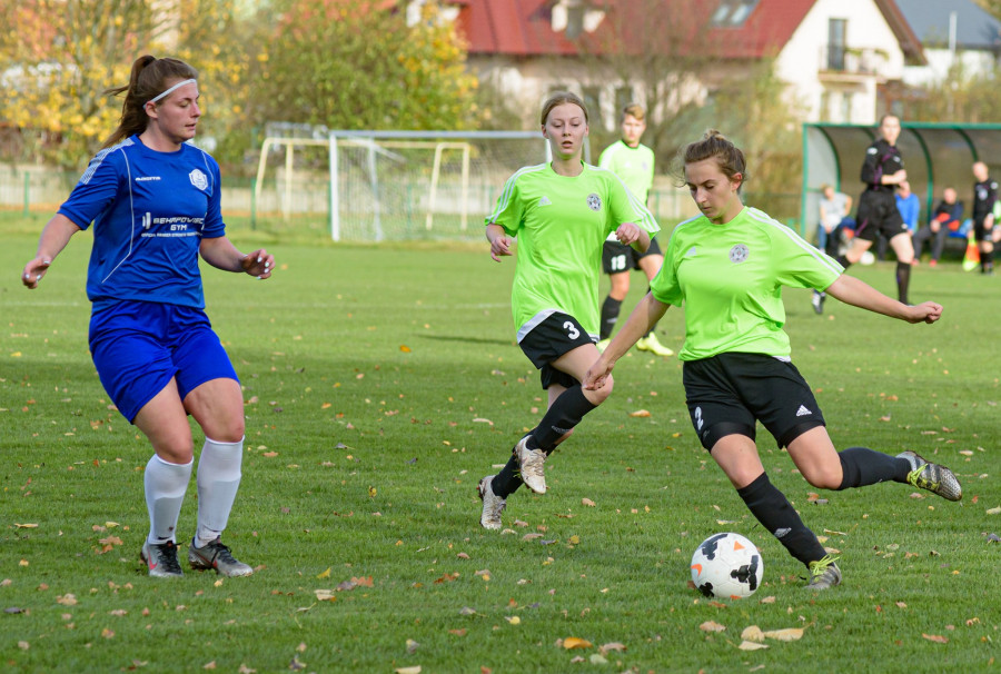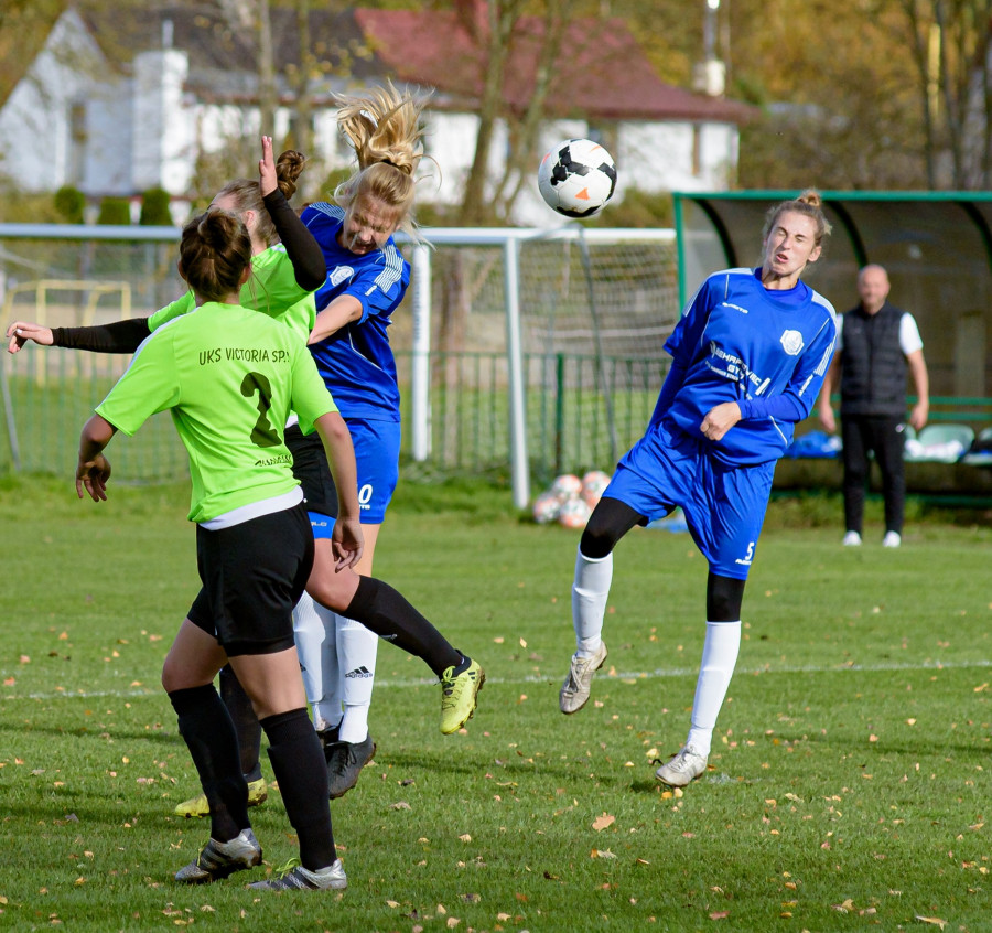 Kolejne punkty zdobyły piłkarki Victorii SP2 Sianów. Tym razem wygrały 2:0 z wiceliderem tabeli II ligi grupy kujawsko-pomorskiej zespołem GSS Grodzisk Wlkp. Wygrana nie przyszła jednak łatwo , można powiedzieć ,że piłkarki Victorii SP2 wyszarpały te punkty po ciężkim meczu , w którym piłkarki grodziskiego GSS-u na pewno nie były gorsze. Faworytem spotkania był zespół przyjezdny , który w rundzie przegrał tylko jedno spotkanie a pozostałe wygrał i tylko o 3 punkty ustępował liderowi z Tczewa. Jednak sianowianki nie przestraszyły się przeciwniczek i już w 3 minucie po rajdzie Malwiny Grzelak prawą stroną i dokładnej centrze ,głową strzela bramkę Wiktoria Ostróżka. 1:0. Jednak stracona bramka nie zdeprymowała grodziszczanek wręcz przeciwnie to one stały się stroną dominującą. W 9 minucie groźną akcję GSS-u zatrzymała sianowska bramkarka Oktawia Kaszewska. W 30 minucie grodziszczanki były bliskie strzelenia gola ale tym razem Kaszewskiej przyszła w sukurs Malwina Grzelak ,które ratuje sianowski zespół przed stratą bramki. Sianowianki umiejętnie się broniły ale też wyprowadzały groźne kontry ,które w 32 i 35 minucie zostały zmarnowane. W 56 minucie piłkarki Victorii SP2 miały wiele szczęścia i Oktawię Kaszewską , która odważnym wyjściem z bramki zażegnała utratę gola. W 61 minucie pięknym podaniem popisała się Marta Fil i niezawodna Malwina Grzelak strzeliła drugą bramkę i sianowianki prowadziły 2:0. Bramka ta uspokoiła piłkarki z Sianowa ,które przejęły inicjatywę w meczu i zaczęły stwarzać groźne sytuacje . W 70 minucie bliska podwyższenia wyniku była Dagmara Petrus ale jej strzał w dobrym stylu obroniła bramkarka gości. W 79 minucie sianowianki w wyniku nieporozumienia obrony o mało co nie tracą bramki. W 85 minucie dobrą sytuację ma Malwina Grzelak ale strzela nad bramką. W 88 minucie na czystą pozycję wychodzi Wiktoria Robakowska ale dogania ją obrończyni i wybija piłkę. Końcówka meczu i doliczony czas gry zdecydowanie należał do grodziszczanek ale na posterunku była sianowska bramkarka , która nawet w sytuacji sam na sam nie dała sobie strzelić gola. I ostatecznie spotkanie kończy się zwycięstwem Victorii SP2. Po meczu trenerzy sianowskiej ekipy Jędrzej Bielecki i Marian Kuna oraz kierownik zespołu byli bardzo zadowoleni z wygranej i trzech punktów. Nie spodziewaliśmy się tak ciężkiego meczu. Owszem przewagę miał zespół z Grodziska ale wiedzieliśmy jak one grają . Byliśmy na to przygotowani i taka była nasza taktyka. Dać im pograć i wyjść z kontrą . I to się nam udało w pełni zrealizować. Mieliśmy słabszą pierwszą połowę ale druga była już o wiele lepsza. Cały czas mieliśmy mecz pod kontrolą. Nasze dziewczyny jak dzielne lwice broniły wyniku i chciały wygrać. Gratulujemy bardzo dobrej postawy drużynie z Grodziska ale nie jest nam przykro ,że 3 punkty zostają w Sianowie. Następny mecz sianowianki zagrają w środę 30 października 2019 o godz.15.00 w Sianowie. Będzie to III runda Pucharu Polski a przeciwnikiem TP Ostrovia 1909 Ostrów Wlkp. Następny zaś mecz ligowy przyjdzie im zagrać w Koninie 3 listopada 2019 o godz.13.00 z UKS Górnicza . W ogóle zapowiada się dla sianowianek ciężki maraton bo już 6 listopada grają we Włocławku zaległy mecz z bardzo dobrym zespołem WAP a 10 listopada w Sianowie z GOSRiT Luzino.