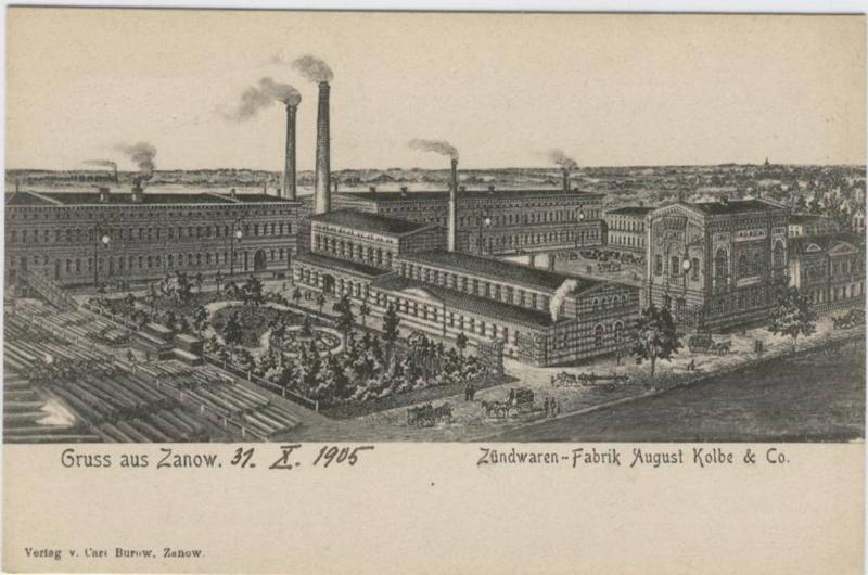 Początki przemysłu zapałczanego w Sianowie sięgają końca pierwszej połowy dziewiętnastego wieku. 1 października 1845 roku,  więc równo czterdzieści lat po wynalezieniu przez francuskiego chemika Chancel pierwszych w świecie zapałek (tzw. zapałek maczanych) oraz zaledwie w kilkanaście lat po wynalezieniu i następnie uruchomieniu produkcji zapałek zbliżonych swoim wyglądem do dzisiejszych przez angielskiego aptekarza Johna Valkera, August Kolbe zakłada pierwszą na tym terenie wytwórnie zapałek w Sianowie. August Kolbe urodził się w sąsiednim mieście Rügenwalde 18 sierpnia 1821 roku, był przedsiębiorczym młodym sprzedawcą, ze zdolnościami chemicznymi i technicznymi. W 1851 roku wżenił się w starą kupiecką rodzinę Eschenbach. Jego żoną została Laura Eschenbach ( ur. 24.06.1836 - zm. 18.04.1897).